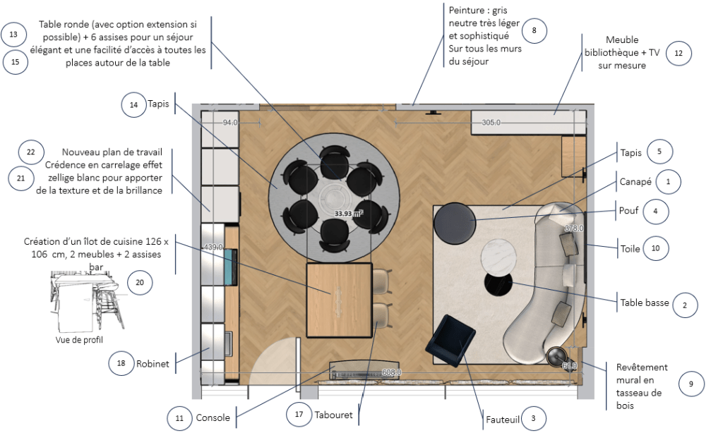 Une fois le dossier sommaire réalisé, nous validons ensemble l’aménagement de votre choix et je vous fournis un dossier complet contenant l’ensemble des éléments dont vous aurez besoin pour vos travaux :